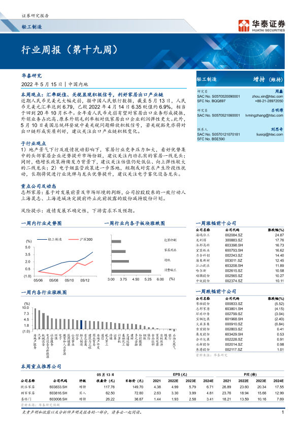 【华泰证券】【20220515】轻工制造行业周报(第十九周)-15页