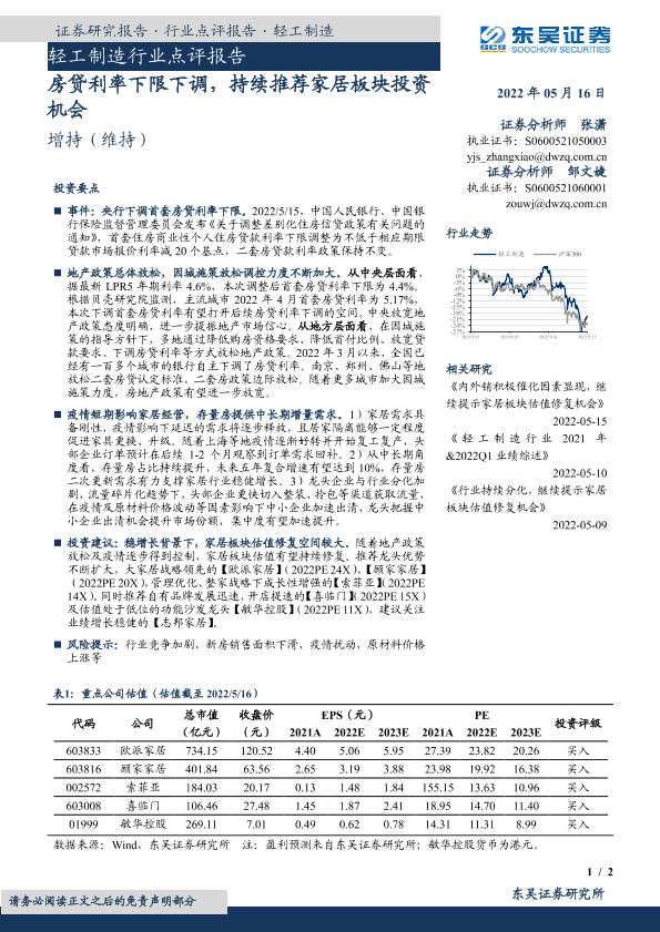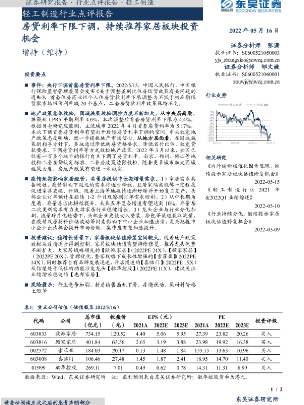 【东吴证券】【20220516】轻工制造行业点评报告:房贷利率下限下调,持续推荐家居板块投资机会-2页