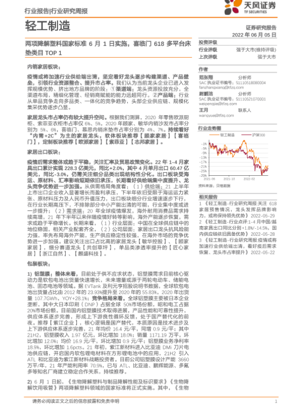 【天风证券】【20220605】轻工制造行业研究周报:两项降解塑料国家标准6月1日实施,喜临门618多平台床垫类目TOP1-22页
