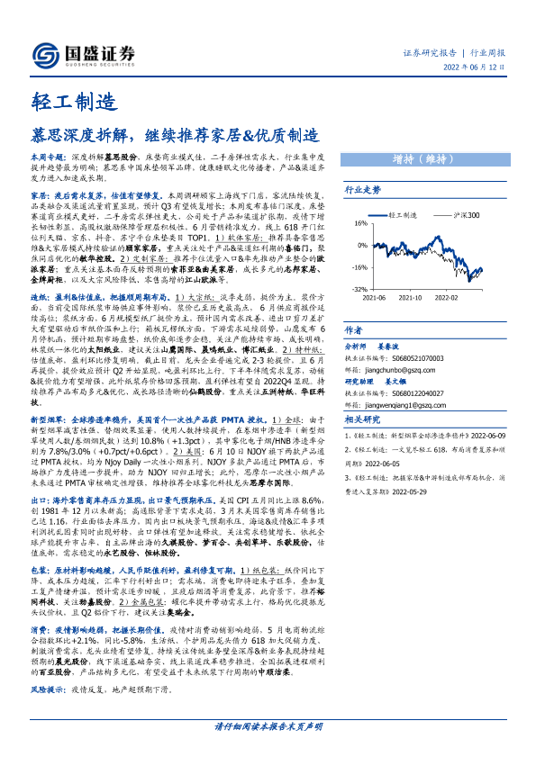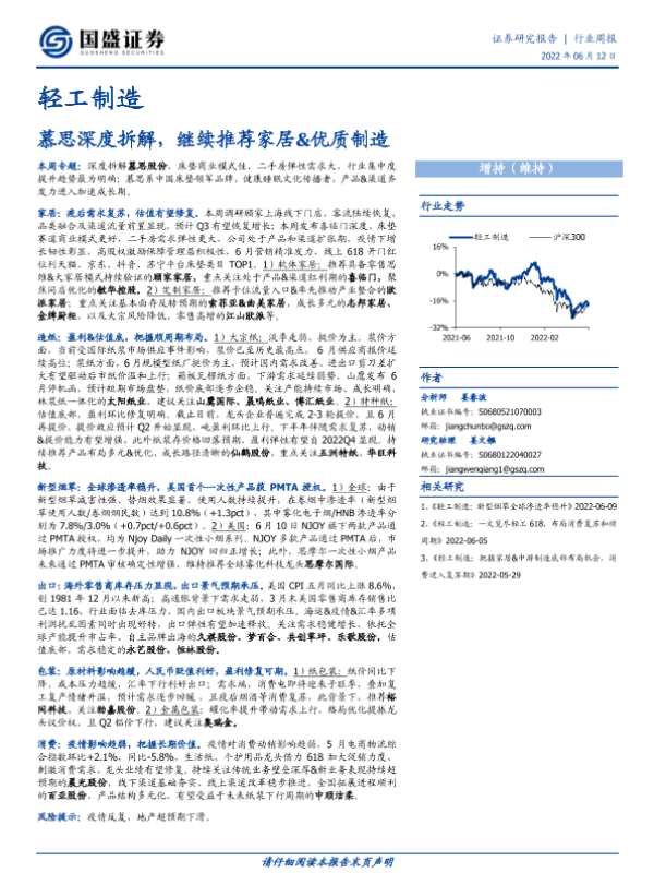 【国盛证券】【20220612】轻工制造行业周报:慕思深度拆解,继续推荐家居&优质制造-108页