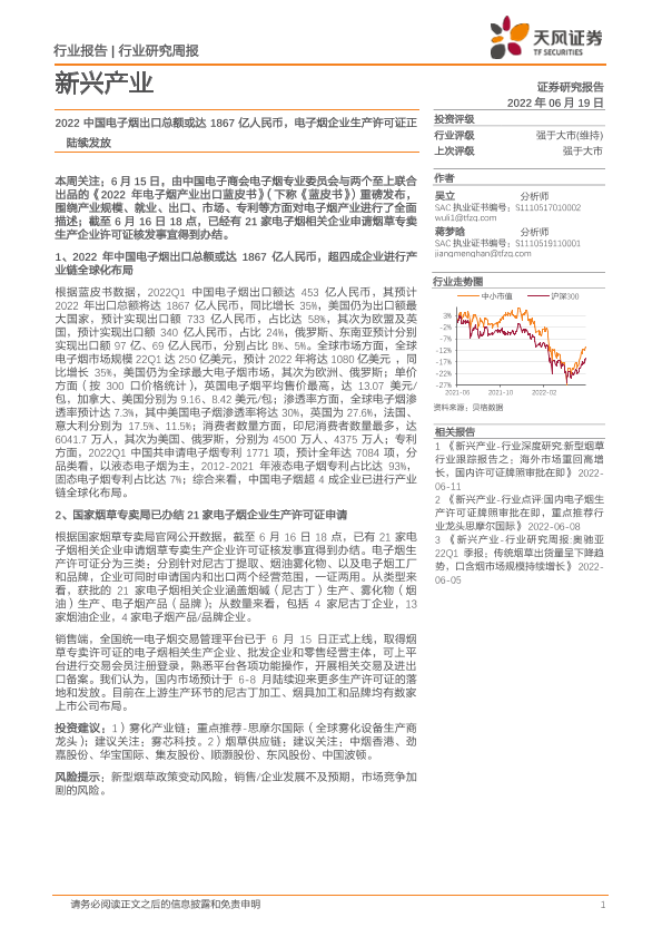 【天风证券】【20220619】2022中国电子烟出口总额或达1867亿人民币,电子烟企业生产许可证正陆续发放-4页