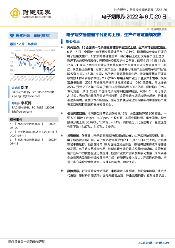 【财通证券】【20220620】20220620-财通证券-电子烟跟踪:电子烟交易管理平台正式上线,生产许可证陆续发放-9页