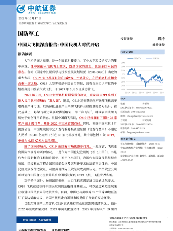 【中航证券】【20221017】中国大飞机深度报告:中国民机大时代开启-64页