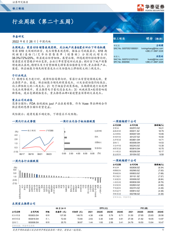 【华泰证券】【20220626】20220626-华泰证券-轻工制造行业周报(第二十五周)-13页