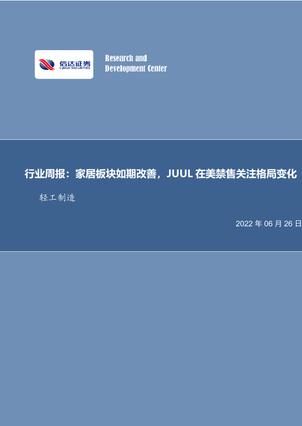 【信达证券】【20220626】20220626-信达证券-轻工制造行业周报:家居板块如期改善,JUUL在美禁售关注格局变化-20页