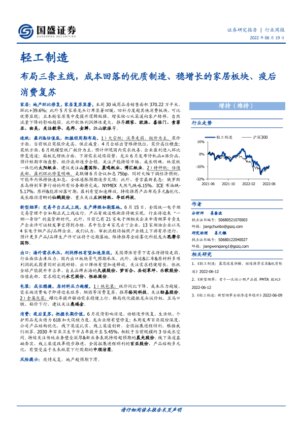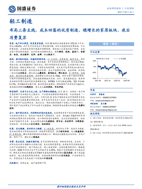 【国盛证券】【20220619】20220619-国盛证券-轻工制造行业周报:布局三条主线,成本回落的优质制造、稳增长的家居板块、疫后消费复苏-72页