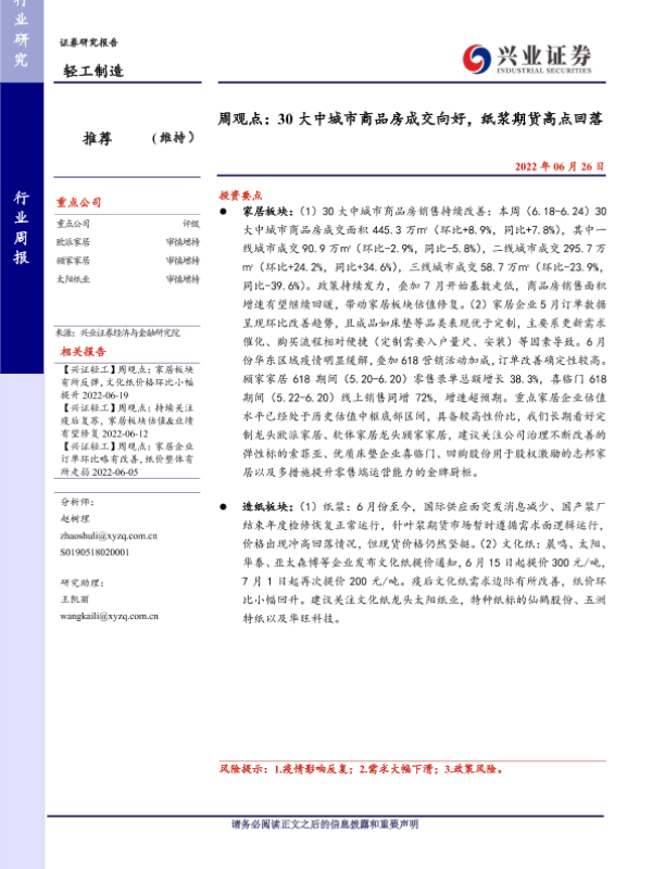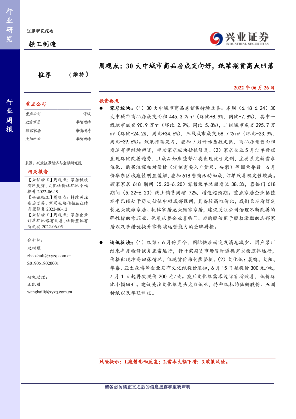 【兴业证券】【20220626】周观点:30大中城市商品房成交向好,纸浆期货高点回落-21页