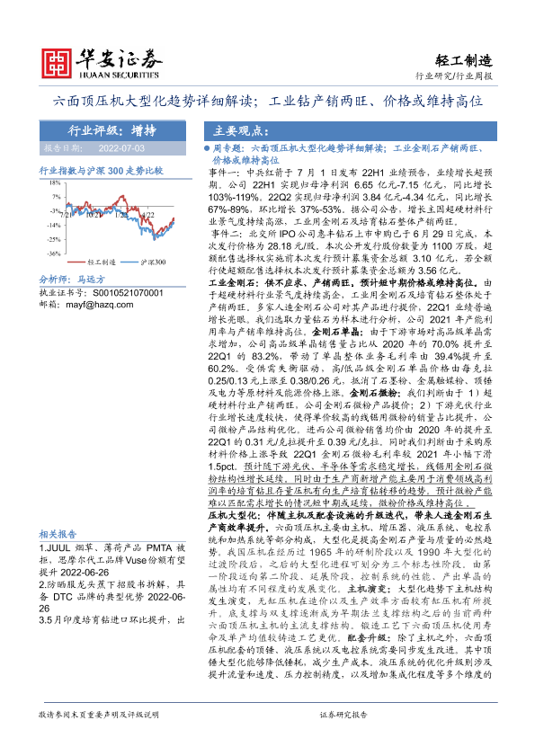 【华安证券】【20220703】20220703-华安证券-轻工制造行业周报:六面顶压机大型化趋势详细解读;工业钻产销两旺、价格或维持高位-29页