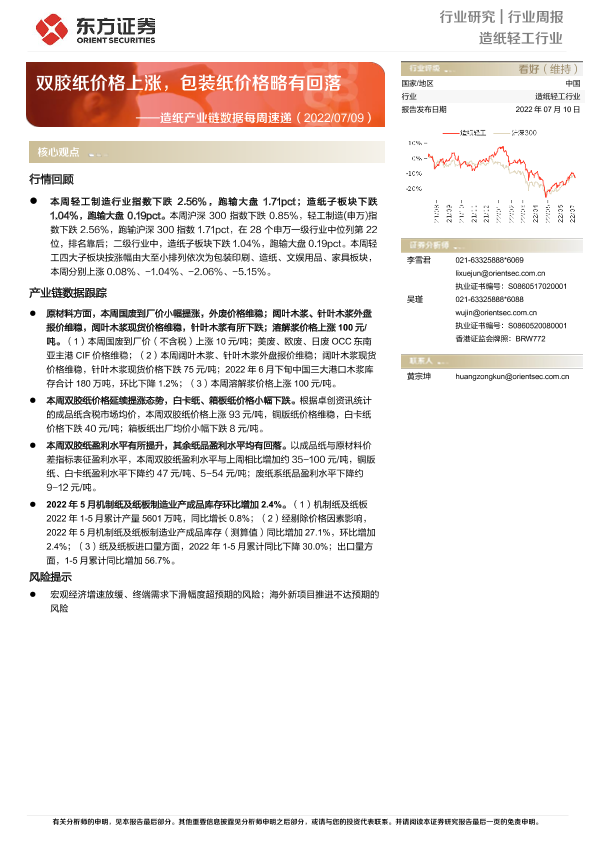 【东方证券】【20220710】20220710-东方证券-造纸产业链数据每周速递:双胶纸价格上涨,包装纸价格略有回落-13页