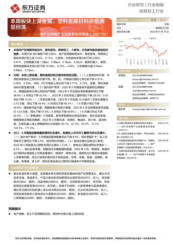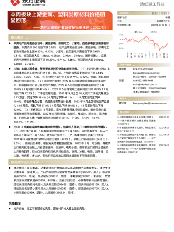 【东方证券】【20220710】20220710-东方证券-地产后周期产业链数据每周速递:本周板块上游金属、塑料类原材料价格明显回落-14页