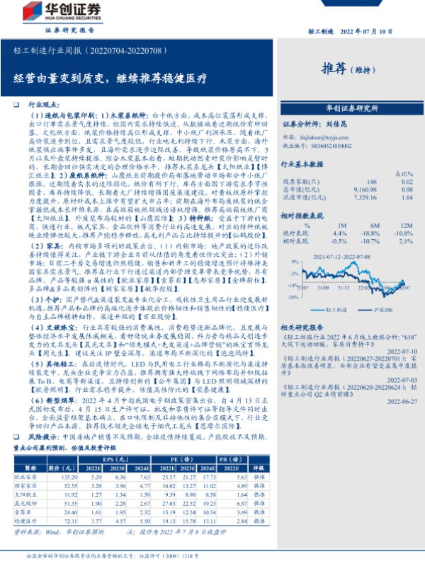 【华创证券】【20220710】20220710-华创证券-轻工制造行业周报:经营由量变到质变,继续推荐稳健医疗-15页