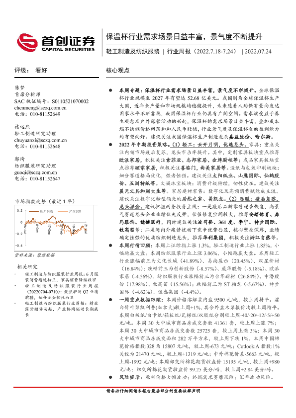 【首创证券】【20220724】20220724-首创证券-轻工制造及纺织服装行业周报:保温杯行业需求场景日益丰富,景气度不断提升-18页