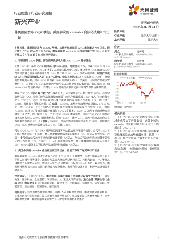 【天风证券】【20220724】新兴产业:菲莫国际发布22Q2季报,美国参议院cannabis合法化法案正式出台-4页