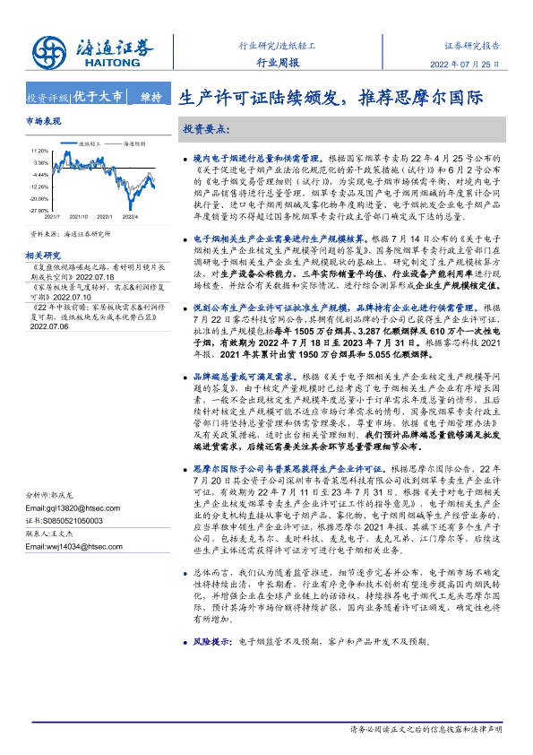 【海通证券】【20220725】20220725-海通证券-造纸轻工行业周报:生产许可证陆续颁发,推荐思摩尔国际-10页