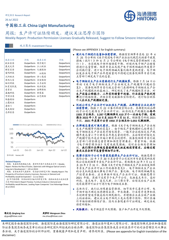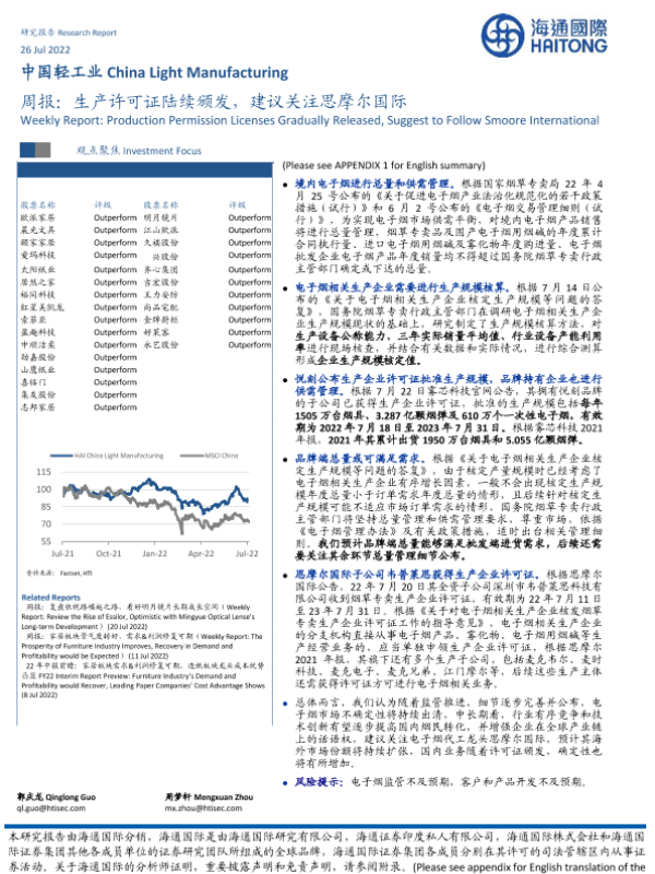 【海通国际】【20220726】中国轻工业周报:生产许可证陆续颁发,建议关注思摩尔国际-18页