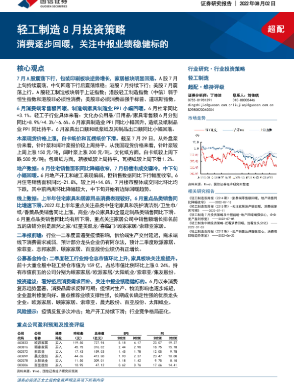 【国信证券】【20220802】20220802-国信证券-轻工制造8月投资策略:消费逐步回暖,关注中报业绩稳健标的-28页