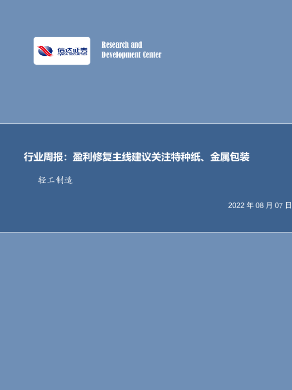 【信达证券】【20220807】20220807-信达证券-轻工制造行业周报:盈利修复主线建议关注特种纸、金属包装-21页