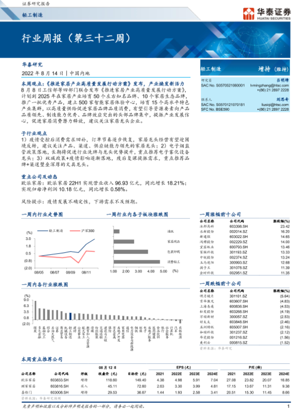 【华泰证券】【20220814】20220814-华泰证券-轻工制造行业周报(第三十二周)-12页
