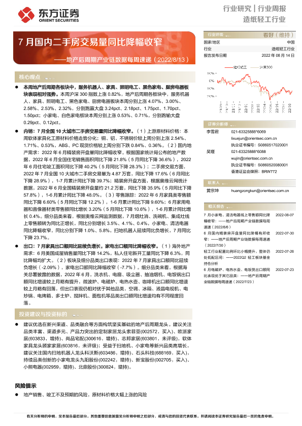 【东方证券】【20220814】20220814-东方证券-造纸轻工行业地产后周期产业链数据每周速递:7月国内二手房交易量同比降幅收窄-14页