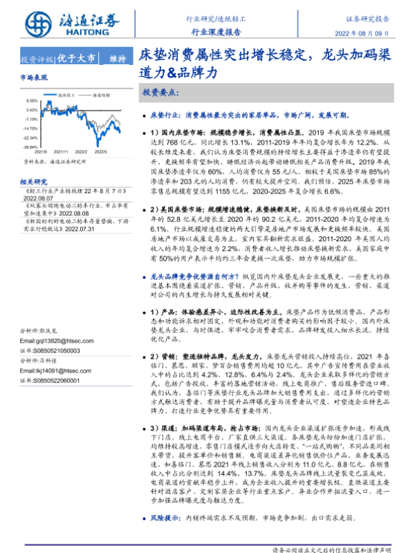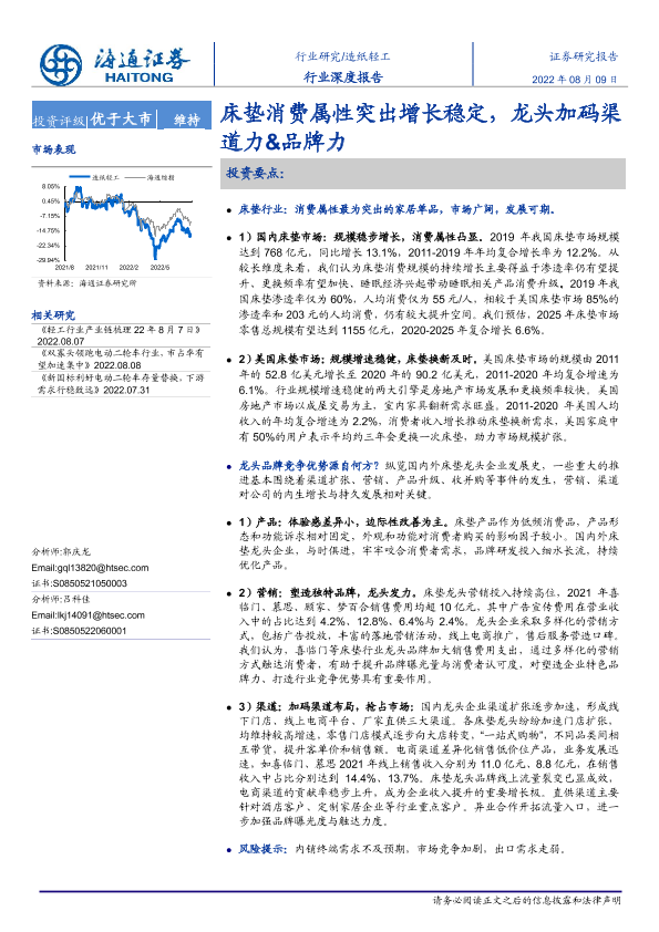 【海通证券】【20220809】20220809-海通证券-造纸轻工行业深度报告:床垫消费属性突出增长稳定,龙头加码渠道力&品牌力-31页