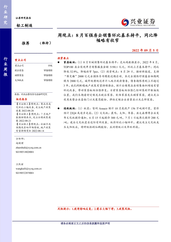 家居销售 市场分析 房地产 轻工制造 造纸行业