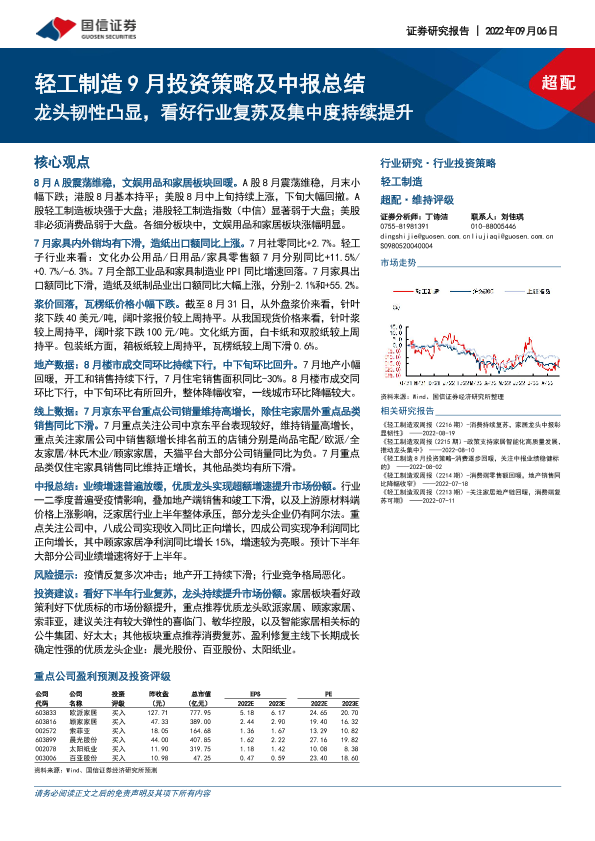 【国信证券】【20220906】轻工制造9月投资策略及中报总结:龙头韧性凸显,看好行业复苏及集中度持续提升-34页