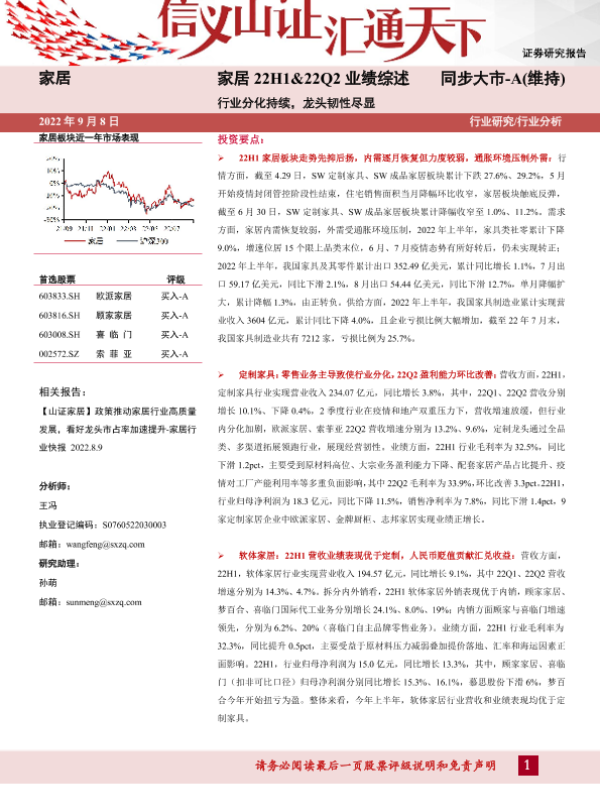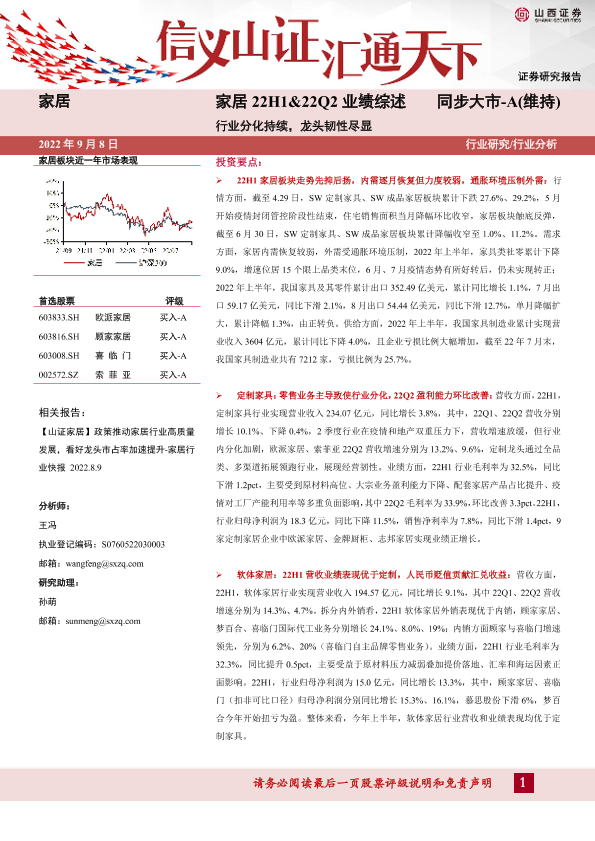 【山西证券】【20220908】家居22H1&22Q2业绩综述:行业分化持续,龙头韧性尽显-29页