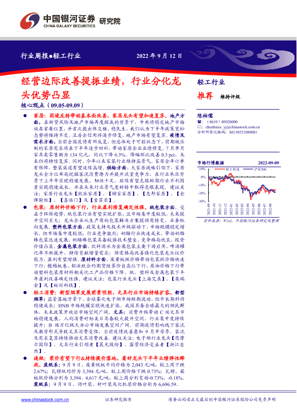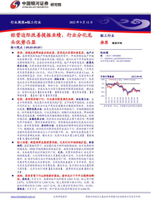 【银河证券】【20220912】20220912-中国银河-轻工行业周报:经营边际改善提振业绩,行业分化龙头优势凸显-24页