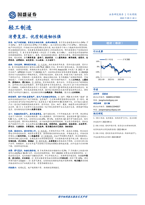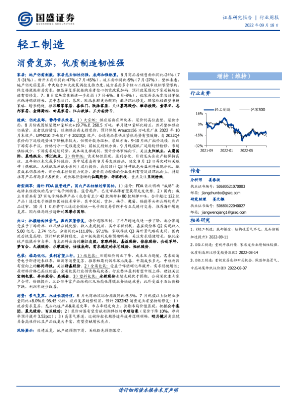 【国盛证券】【20220918】轻工制造行业周报:消费复苏,优质制造韧性强-63页