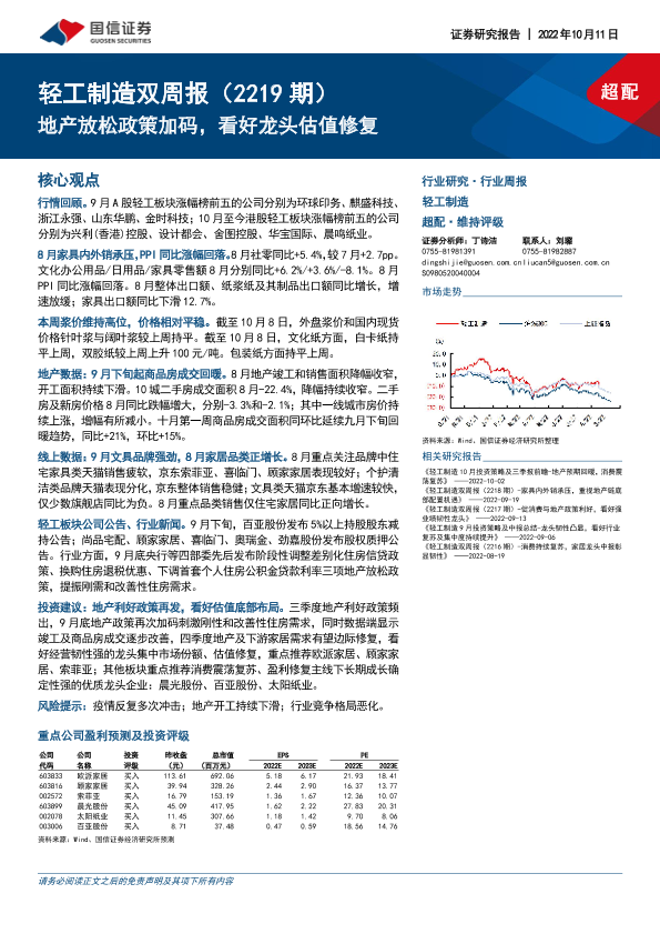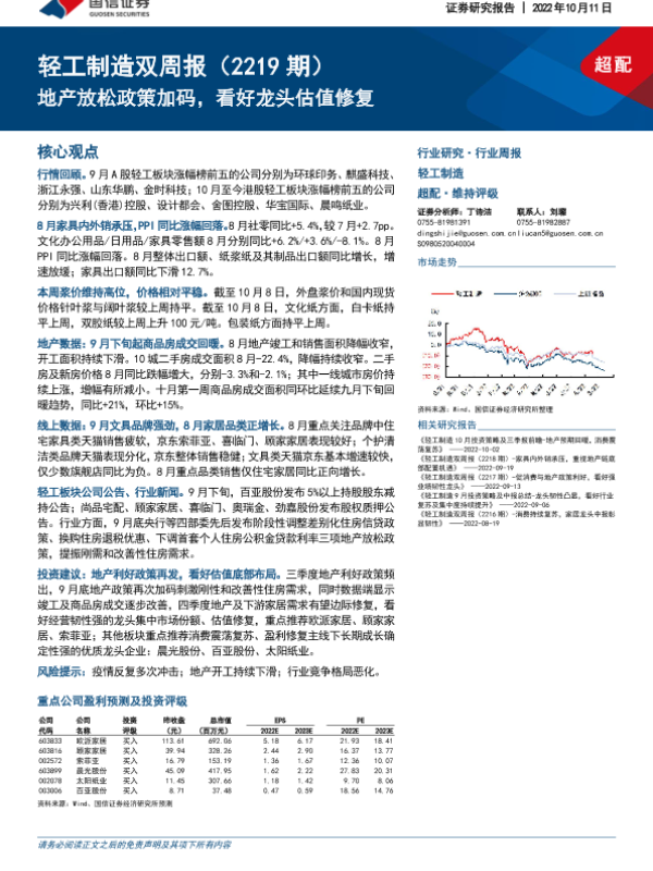 【国信证券】【20221011】20221011-国信证券-轻工制造双周报(2219期):地产放松政策加码,看好龙头估值修复-23页