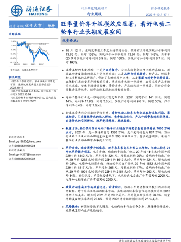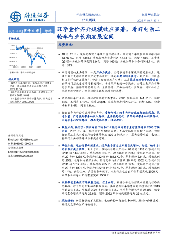 【海通证券】【20221017】20221017-海通证券-造纸轻工行业周报:旺季量价齐升规模效应显著,看好电动二轮车行业长期发展空间-12页