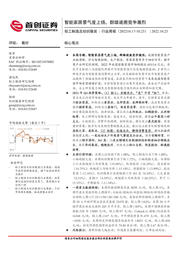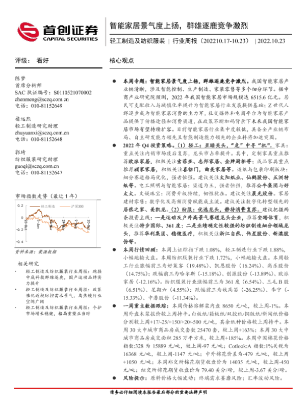 【首创证券】【20221023】20221023-首创证券-轻工制造及纺织服装行业周报:智能家居景气度上扬,群雄逐鹿竞争激烈-19页