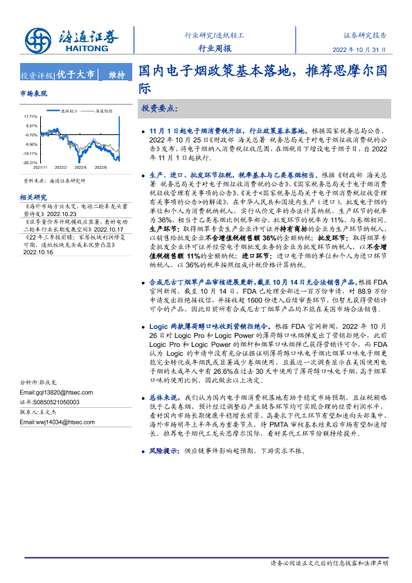 【海通证券】【20221031】20221031-海通证券-造纸轻工行业周报:国内电子烟政策基本落地,推荐思摩尔国际-11页