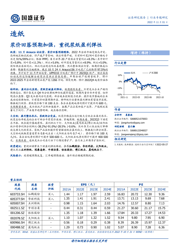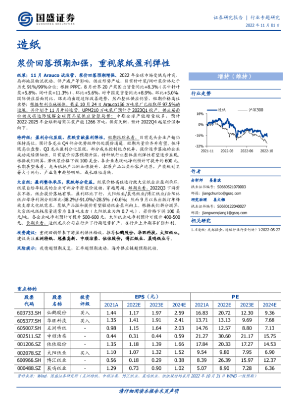 【国盛证券】【20221101】20221101-国盛证券-造纸行业专题研究:浆价回落预期加强,重视浆纸盈利弹性-14页
