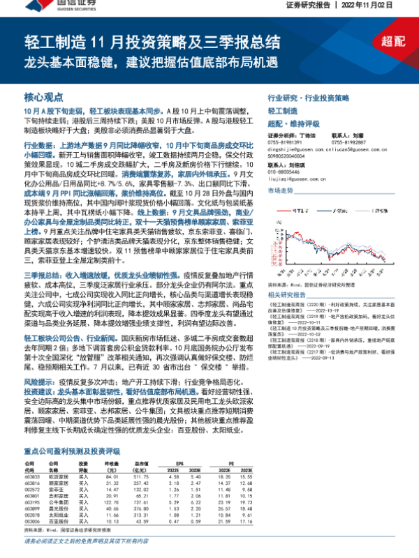 【国信证券】【20221102】轻工制造11月投资策略及三季报总结:龙头基本面稳健,建议把握估值底部布局机遇-37页