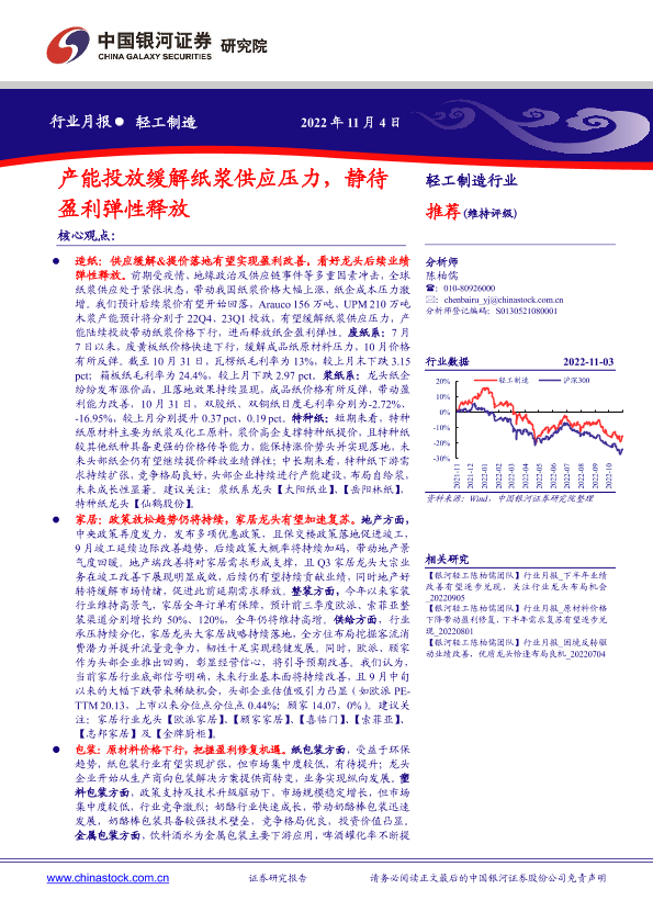 【银河证券】【20221104】20221104-中国银河-轻工制造行业月报:产能投放缓解纸浆供应压力,静待盈利弹性释放-23页