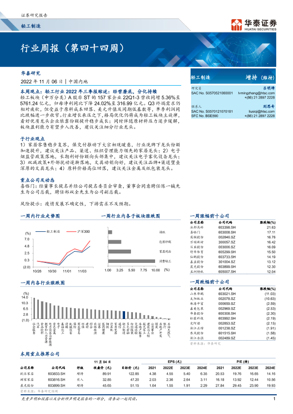 【华泰证券】【20221106】20221106-华泰证券-轻工制造行业周报(第四十四周)-14页