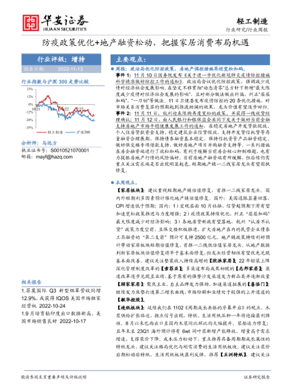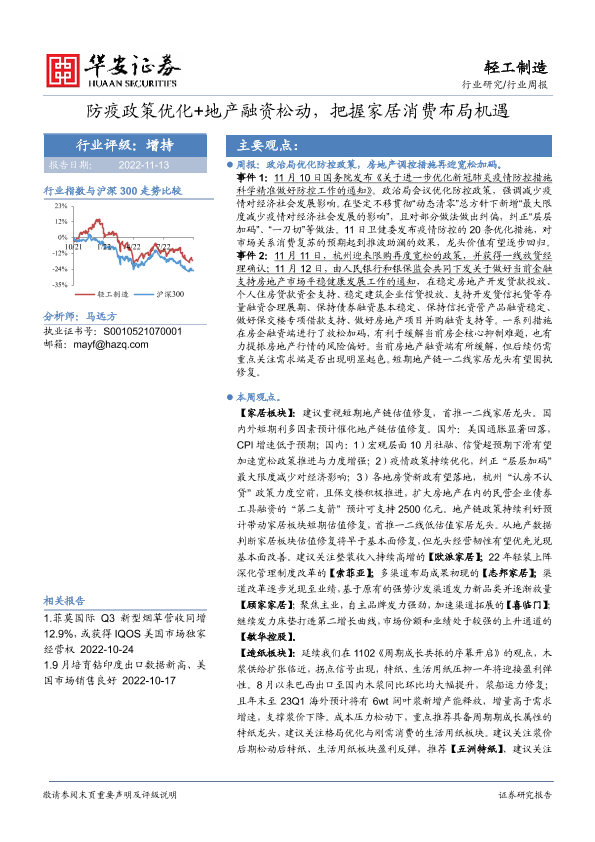 【华安证券】【20221113】20221113-华安证券-轻工制造行业周报:防疫政策优化+地产融资松动,把握家居消费布局机遇-18页