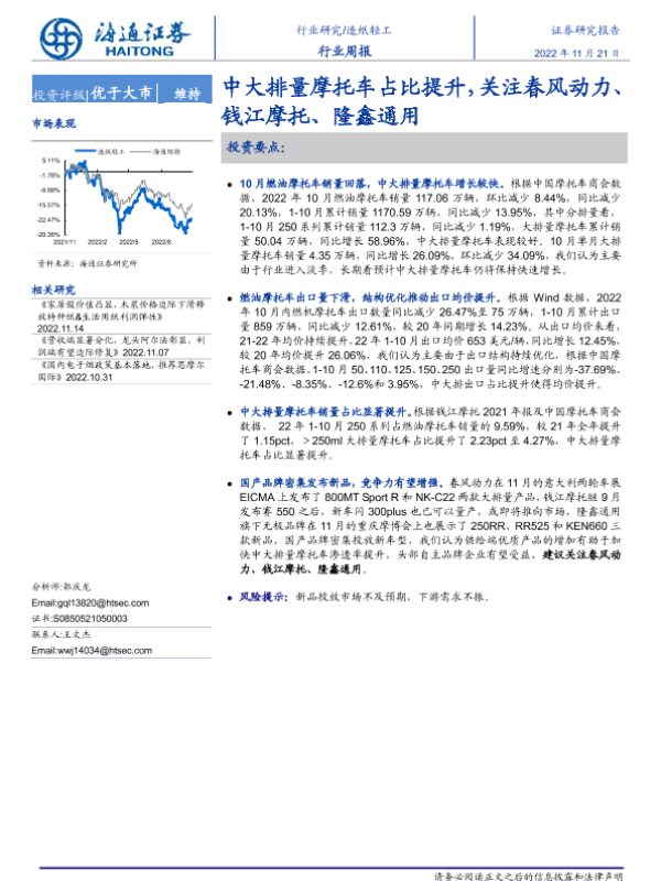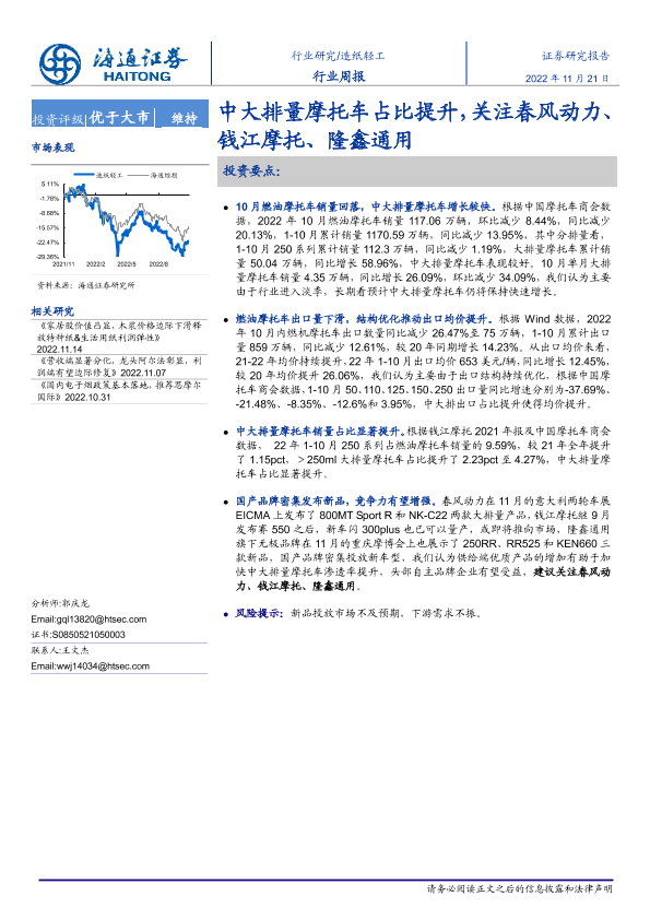 【海通证券】【20221121】20221121-海通证券-造纸轻工行业周报:中大排量摩托车占比提升,关注春风动力、钱江摩托、隆鑫通用-12页