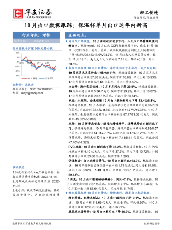 【华安证券】【20221121】10月出口数据跟踪:保温杯单月出口达年内新高-14页