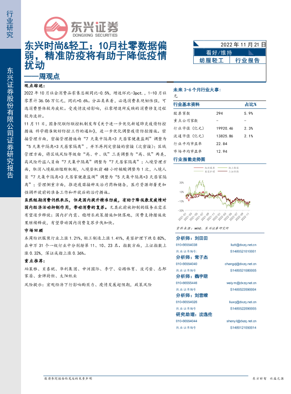 【东兴证券】【20221121】东兴时尚&轻工周观点:10月社零数据偏弱,精准防疫将有助于降低疫情扰动-15页