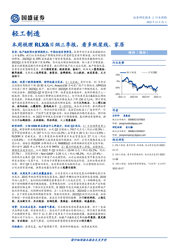 【国盛证券】【20221121】20221121-国盛证券-轻工制造行业周报:本周梳理RLX&日烟三季报,看多纸浆线、家居-52页