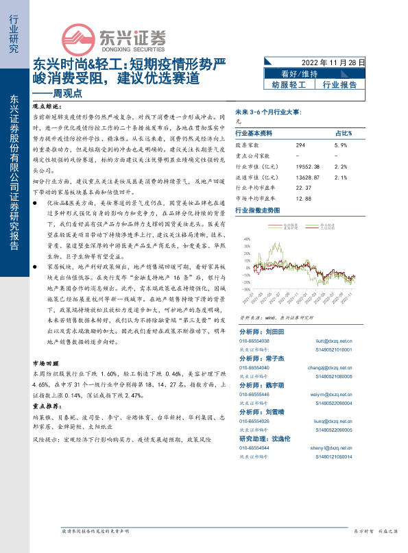 【东兴证券】【20221128】东兴时尚&轻工周观点:短期疫情形势严峻消费受阻,建议优选赛道-15页