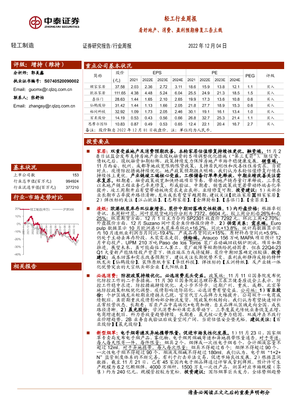 【中泰证券】【20221204】20221204-中泰证券-轻工行业周报:看好地产、消费、盈利预期修复三条主线-16页