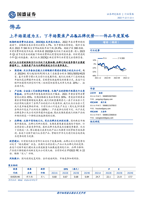 【国盛证券】【20221213】饰品年度策略:上半场渠道为王,下半场聚焦产品&品牌优势-25页