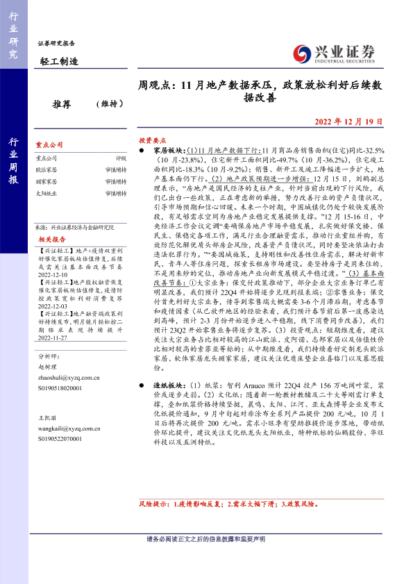 【兴业证券】【20221219】20221219-兴业证券-轻工制造周观点:11月地产数据承压,政策放松利好后续数据改善-21页