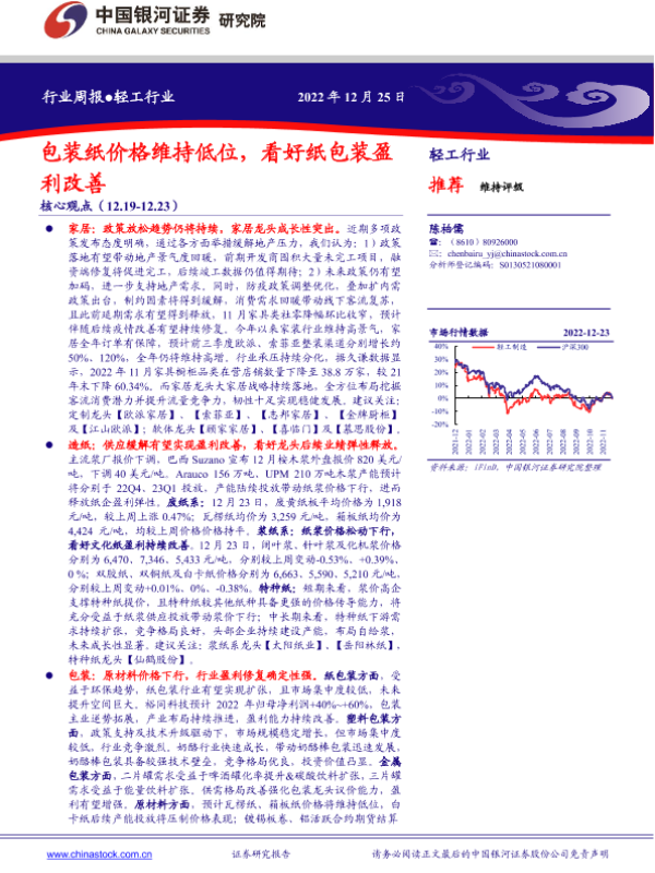 【银河证券】【20221225】20221225-中国银河-轻工行业周报:包装纸价格维持低位,看好纸包装盈利改善-22页