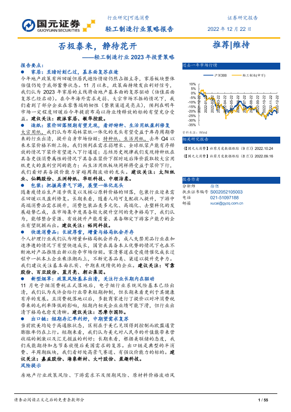 【国元证券】【20221222】轻工制造行业2023年投资策略:否极泰来,静待花开-55页