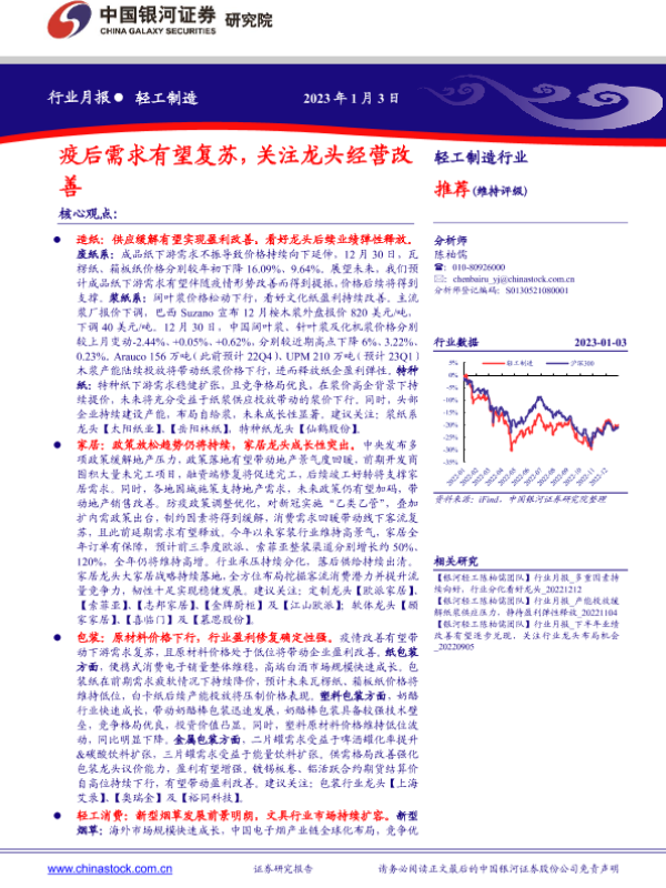 【银河证券】【20230103】20230103-中国银河-轻工制造行业月报:疫后需求有望复苏,关注龙头经营改善-22页