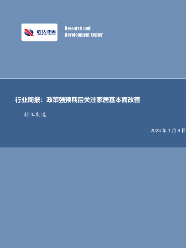 【信达证券】【20230108】20230108-信达证券-轻工制造行业周报:政策强预期后关注家居基本面改善-21页